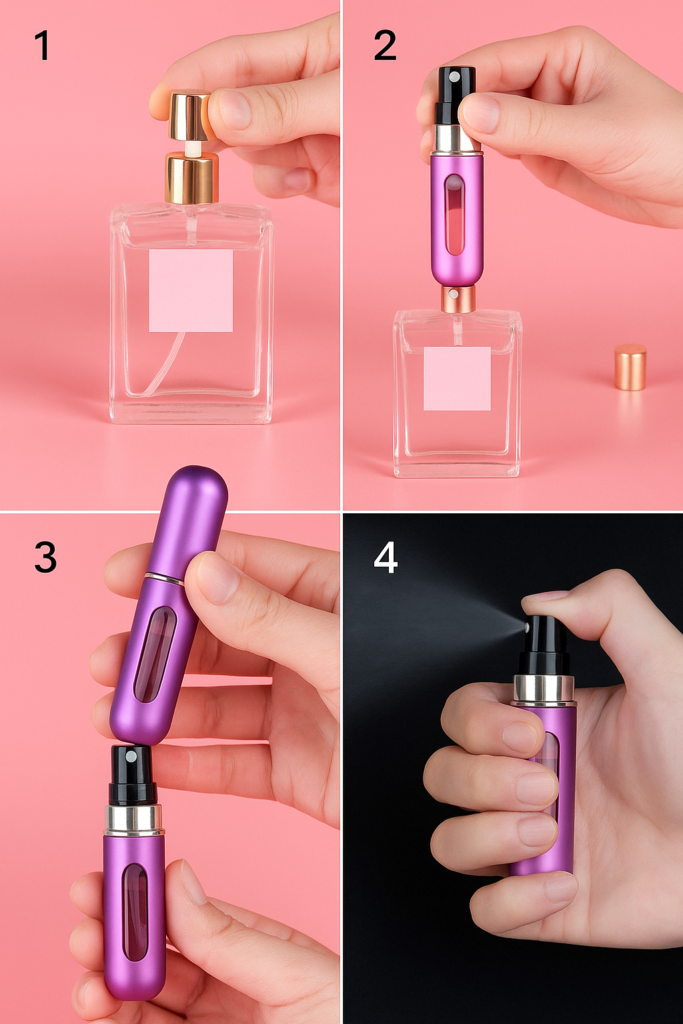Fraccionar un perfume en frascos pequeños y accesibles.
